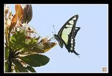 柑橘凤蝶是鳞翅目凤蝶科凤蝶属昆虫,又称柑橘黄凤蝶、花椒凤蝶、燕凤蝶。中型凤蝶。翅底色黑褐色,翅脉黑色,各翅室内具长短不一的黄白色斑;前翅中室具4条近乎平行的黄色线纹,后翅臀区具一枚橘红色的圆斑,…全部>>