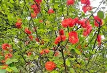 贴梗海棠Nakai)是蔷薇科、木瓜海棠属植物。落叶灌木,高达2米,枝条直立开展,有刺。叶片卵形至椭圆形,稀长椭圆形,长3-9厘米,宽1.5-5厘米。花先叶开放,3-5朵簇生于二年生老枝上。…全部>>