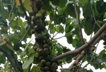 大果榕是桑科榕属的小乔木,株高可达10米;幼枝被柔毛;叶互生,宽卵状心形或近圆形;雄花无梗、匙形、花丝长,雌花生于雌株榕果内,子房白色;榕果簇生于树干基部或老茎短枝上、扁球形或陀螺形,…全部>>