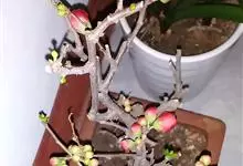 贴梗海棠 Nakai)是蔷薇科、木瓜海棠属植物。落叶灌木,高达2米,枝条直立开展,有刺。叶片卵形至椭圆形,稀长椭圆形,长3-9厘米,宽1.5-5厘米。花先叶开放,3-5朵簇生于二年生老枝上。…全部>>