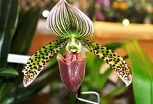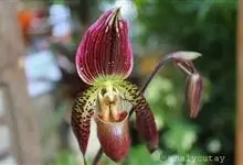 虎斑兜兰兰科,兜兰属地生或半附生植物。叶基生;数枚至多枚,叶片带形、革质。花葶从叶丛中长出,花苞片非叶状;子房顶端常收狭成喙状;花大而艳丽,有种种色泽;中萼直立,花粉粉质或带粘性,退化雄蕊扁平;柱头…全部>>