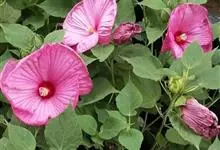 芙蓉葵是锦葵科木槿属植物,又名草芙蓉、大花秋葵,原产于北美。落叶灌木状。叶大、广卵形,叶柄、叶背密生灰色星状毛。花大,单生于叶腋,有白、粉、红、紫等色。喜阳、略耐阴,宜温暖湿润气候,忌干旱,耐水湿,…全部>>