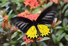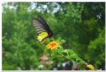 金裳凤蝶是凤蝶科、裳凤蝶属的动物。金裳凤蝶身体呈黑色,头、颈和胸侧有红毛,腹部有黑黄两色相间条纹,雄蝶前翅黑色,具黑天鹅绒光泽,各脉两侧灰白色,后翅金黄色,各室外缘有等腰三角形黑斑1枚,斑内侧有晕,…全部>>