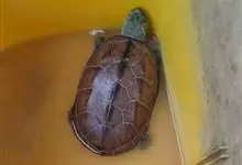 花龟,是龟鳖目龟科花龟属水栖龟类;头较小,头背皮肤光滑。背甲与腹甲以骨缝相连,甲桥明显,有鲜明的黄色细线纹从吻端经眼和头侧,并沿头的背腹面向颈部延伸;四肢及尾亦满布黄色细线纹。…全部>>