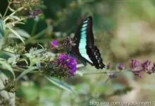 青带凤蝶Graphium sarpedon ,又名青凤蝶,是最普遍的中型凤蝶,飞行速度很快。青带凤蝶的翅膀中央有许多浅蓝色的斑点,很整齐地排列成一条直线。这些斑点由上而下逐渐变大,就像一条青色的带子。全部>>
