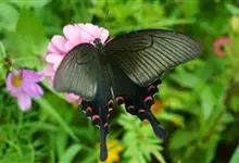 宽尾凤蝶是凤蝶科、宽尾凤蝶属昆虫。翅展115-130毫米。体、翅黑色,翅面散生黄色鳞片;前翅前缘色深,后翅外缘波状,波谷红色,。雄性外生殖器上钩突窄小,骨化。雌性外生殖器产卵瓣较长;交配孔宽大,…全部>>