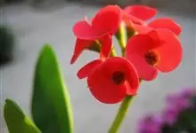 铁海棠为大戟科大戟属蔓生灌木植物;茎多分枝,具纵棱,呈旋转状;叶互生,通常集中于嫩枝上;每个花序基部边缘具微小的红色尖头;苞叶先端圆且具小尖头,无柄,上面鲜红色,下面淡红色;苞片丝状;子房光滑无毛,…全部>>