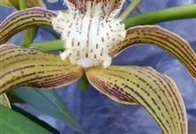 虎头兰是兰科兰属附生植物。假鳞茎窄椭圆形或窄卵形;叶呈带形;花葶长45-60厘米,苞片卵状三角形,花有香气,萼片与花瓣绿或黄绿色,基部疏生深红色斑点或偶有淡红褐色晕,唇瓣白色或奶油黄色,…全部>>