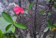 虎刺梅:别称铁海棠,是蔓生灌木植物。茎多分枝,长60-100厘米,直径5-10毫米,具纵棱,密生硬而尖的锥状刺,刺长1-1.5厘米,直径0.5-1.0 毫米,常呈3-5列排列于棱脊上,呈旋转。叶互生…全部>>