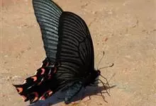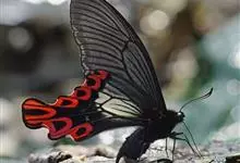 宽尾凤蝶是凤蝶科、宽尾凤蝶属昆虫。翅展115-130毫米。体、翅黑色,翅面散生黄色鳞片;前翅前缘色深,后翅外缘波状,波谷红色,。雄性外生殖器上钩突窄小,骨化。雌性外生殖器产卵瓣较长;交配孔宽大,…全部>>