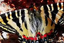 中华虎凤蝶是鳞翅目凤蝶科虎凤蝶属昆虫。双翅颜色为黄底黑纹,色如虎皮;雌、雄斑纹相同,但雌蝶的黄色往往要略深一些;后翅外缘呈波浪状,长有较短的尾突;除翅外,整体黑色,…全部>>