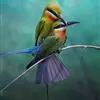 蓝颊蜂虎:是蜂虎科、蜂虎属的鸟类,共有2个亚种。体长27-33厘米,翼展46-49厘米,体重38-50克。嘴形细长而下弯,先端尖,…全部>>