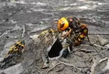 虎头蜂,又名黄脚胡蜂、黄马蜂,是膜翅目胡蜂科胡蜂属昆虫。虎头蜂前胸背板侧面具横皱,后足胫节长刚毛稀少,颅顶黑色或黄褐色,腹部第4背板端部常有1条宽黄带,腹部末端有螫针,连接着毒腺。因为头大得像老虎,…全部>>