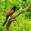 褐翅鸦鹃,是鹃形目鸦鹃科鸦鹃属的鸟类。褐翅鸦鹃的身体为黑色;头颈和胸带蓝紫色金属光泽并具黑亮的羽干纹,下胸至腹部泛金属绿光泽;两翼和肩部为棕栗色,外侧飞羽具暗色羽端,尾羽闪铜绿色光泽;虹膜赤红色,…全部>>