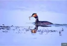 凤头鸊鷉:体长为50厘米以上,体重为0.5-1千克。前额和头顶部黑褐色,枕部两侧的羽毛往后延伸,分别形成束羽冠。脚的位置几乎处于身体末端,尾羽短而不显,趾侧有瓣蹼。瓣蹼十分发达,除了适于游水之外,…全部>>