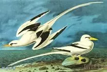 白尾鹲:体重220-410克;体长370-400毫米,加上延长的尾羽为680-990毫米,是一种中型热带海鸟。全身羽毛主要为白色,繁殖期微缀有橙色。眼前和眼后有粗著的黑色斑,像两条粗黑的眼眉。…全部>>