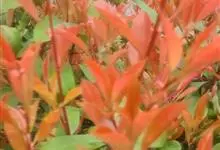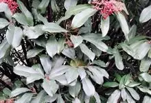 红叶石楠 是蔷薇科,石楠属杂交种,为常绿小乔木或灌木,乔木高可达5米、灌木高可达2米。叶片革质,长圆形至倒卵状、披针形,叶端渐尖,叶基楔形,叶缘有带腺的锯齿,花多而密,复伞房花序,花白色,梨果黄红色,…全部>>