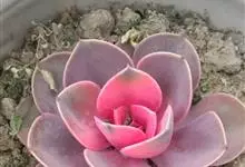 紫珍珠是景天科石莲花属的多年生肉质草本植物。植株中小型;叶片肉质,匙形,呈莲座状紧密排列;叶片粉紫色,叶缘呈粉白色,光照充足时颜色亮丽,不足时叶色会呈现深绿色或灰绿色,叶面光滑,被轻微白粉,…全部>>
