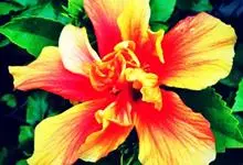 重瓣朱槿是锦葵科、木槿属常绿灌木植物;小枝疏被星状柔毛单叶互生,卵形或卵状披针形,基部圆形;叶柄长;托叶早落;花重瓣,较朱槿为大;花萼小,钟形,基部具有苞片多枚;花瓣多枚排列成彩球状,…全部>>