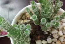 玉翁是仙人掌科、乳突球属多年生草本多浆植物。植株幼时呈扁球形或球形,以后长成圆筒状,直径10厘米左右,淡绿色。疣状突起呈圆锥形,新刺座的白色绵毛很短,疣突腋部则有20根白色长绵毛,绵毛长4厘米左右,…全部>>
