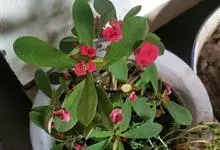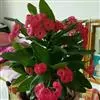 铁海棠为大戟科大戟属蔓生灌木植物;茎多分枝,具纵棱,呈旋转状;叶互生,通常集中于嫩枝上;每个花序基部边缘具微小的红色尖头;苞叶先端圆且具小尖头,无柄,上面鲜红色,下面淡红色;苞片丝状;子房光滑无毛,…全部>>