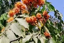 中国无忧花, 豆科无忧花属植物。常绿乔木,高5—20米,胸径达25厘米。偶数羽状复叶,有小叶5—6对,近革质,长椭圆形或长倒卵形;花两性或单性,橙黄色至深红色,荚果带状;夏季为开花期,种子秋季成熟。…全部>>