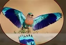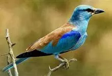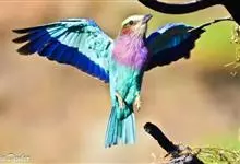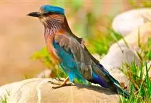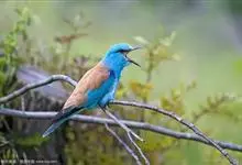 棕胸佛法僧是佛法僧科佛法僧属中型鸟类,体长32~35厘米。黑色的嘴细而下弯。头顶暗蓝色,喉、上背及部分飞羽淡紫;上胸葡萄紫色,具蓝色中央纹,下胸葡萄褐色,腹和尾下覆羽淡蓝色。腰蓝紫色,尾上覆羽辉蓝色。…全部>>