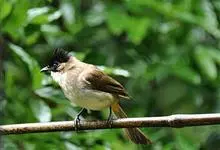 白喉冠鹎:体长20-25厘米。头顶红褐色,有长而细的羽冠、红褐色,头侧灰色。上体橄榄绿黄色,飞羽暗褐色,外翈茶黄色,尾下覆羽皮黄色。…全部>>