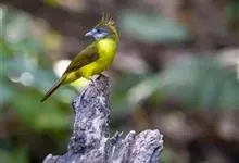 黄腹冠鹎:体长19-24厘米,是一种体型略大的褐色鹎。头顶橄榄褐色具黑褐色羽冠。白色的喉膨起,下体黄色。似白喉冠鹎但较鲜亮,上体褐色较重,腹部为鲜亮的柠檬黄色。虹膜褐色;嘴黑色;脚粉红色。…全部>>