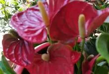 花烛,别名红鹅掌、红掌、安祖花等,为天南星科花烛属的一种多年生草本植物。其茎矮;叶互生,叶片革质,有光泽,阔心形、圆心形,先端钝或渐尖,基部深心形;肉穗花序有细长花序梗,佛焰苞深红色或橘红色,…全部>>