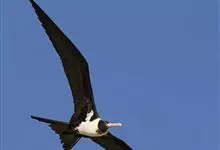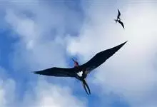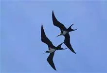 军舰鸟是鹈形目军舰鸟科军舰鸟属鸟类的通称,又称军人鸟。身体较小,腿又短又细,长有钩状嘴;翅膀细长,有很长的叉形尾巴。雄鸟体羽全黑,雌鸟大多数背部、头部和腹部为略带黑色的褐色,而胸部和腋距为白色。…全部>>
