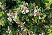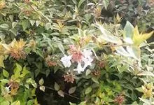 大花六道木,忍冬科六道木属半常绿矮生灌木。其幼枝为红褐色,有短柔毛;叶片倒卵形为墨绿色,有光泽;花粉钟形为白色;圆锥花序,开花繁茂;花期长,5~11月持续开花。…全部>>