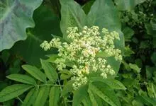 接骨木,又名九节风、续骨草、木蒴藋、东北接骨木,是荚蒾科接骨木属的一种落叶灌木或小乔木。茎老枝淡红褐色,具有明显的长椭圆形皮孔,髓部淡褐色;羽状复叶有小叶2-3对,…全部>>