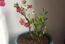 贴梗海棠Nakai)是蔷薇科、木瓜海棠属植物。落叶灌木,高达2米,枝条直立开展,有刺。叶片卵形至椭圆形,稀长椭圆形,长3-9厘米,宽1.5-5厘米。花先叶开放,3-5朵簇生于二年生老枝上。…全部>>