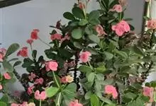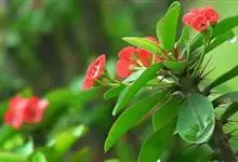 铁海棠为大戟科大戟属蔓生灌木植物;茎多分枝,具纵棱,呈旋转状;叶互生,通常集中于嫩枝上;每个花序基部边缘具微小的红色尖头;苞叶先端圆且具小尖头,无柄,上面鲜红色,下面淡红色;苞片丝状;子房光滑无毛,…全部>>