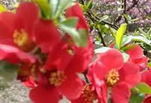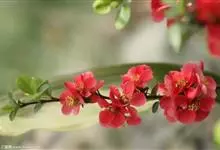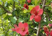 贴梗海棠Nakai)是蔷薇科、木瓜海棠属植物。落叶灌木,高达2米,枝条直立开展,有刺。叶片卵形至椭圆形,稀长椭圆形,长3-9厘米,宽1.5-5厘米。花先叶开放,3-5朵簇生于二年生老枝上。…全部>>