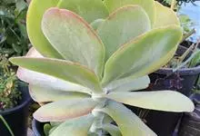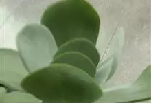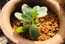 唐印为景天科伽蓝菜属的多年生肉质草本植物。植株中型,株高50厘米,宽20厘米,多分枝;叶片肉质,对生,卵形,全缘,先端钝圆,叶片淡绿色至灰绿色,表面被有厚厚的白粉,光照充足时,叶缘呈红色;圆锥花序,…全部>>