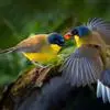 黄喉噪鹛体型略小,顶冠蓝灰色,特征为具黑色的眼罩和鲜黄色的喉。上体褐色,尾端黑色而具白色边缘,腹部及尾下覆羽皮黄色而渐变成白色。黄喉噪鹛隐匿于亚热带常绿林和浓密灌丛,于地面杂物中取食,喜食昆虫,…全部>>