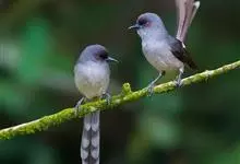 长尾奇鹛是噪眉科、奇鹛属中型鸟类,体长28-33厘米。上体包括两翅和尾鼠灰色,头顶和两翅较深,尾较淡,尾呈凸状、特长、具灰白色端斑,翅具显著的白色翅斑,在黑色的翅上极为醒目。喉胸褐灰色,…全部>>