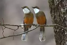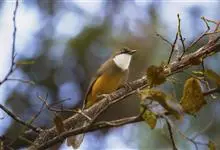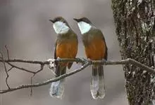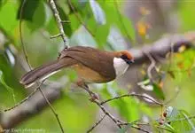 白颊噪鹛是雀形目噪鹛科噪鹛属鸟类,又称土画眉、小画眉、小噪鹃。成鸟额至头顶栗褐色,长眉纹、眼先和颊纹棕白色,眼后至耳羽深褐色,…全部>>