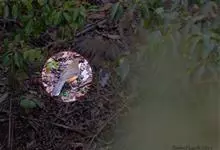 栗颈噪鹛是噪眉科、噪鹛属中型鸟类,体长22-25厘米。头顶至枕暗石板灰色,前额、头侧、颏、喉至上胸黑色,耳后至颈侧有一栗棕色块斑,在头后颈侧极为醒目。上体暗橄榄褐色,两翅黑褐色,初级飞羽外翈沾灰。…全部>>