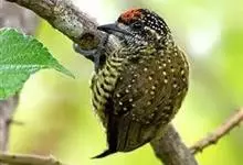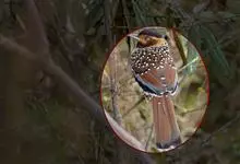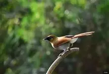 大噪鹛:中型鸟类,体长32-36厘米。额至头顶黑褐色,背栗褐色满杂以白色斑点,斑点前缘或四周还围有黑色。初级覆羽、大覆羽和初级飞羽具白色端斑。尾特长,均具黑色亚端斑和白色端斑。颏、喉棕褐色,…全部>>