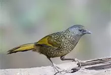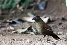 蓝翅噪鹛:噪鹛科、彩翼噪鹛属动物。中型鸟类,体长22-25厘米。上体棕橄榄褐色密被黑色鳞状斑,眼蓝白色,眼上有一长而宽阔的黑色眉纹,从眼先直到颈侧。下体棕褐色被黑色鳞状斑;尾上和尾上覆羽栗色,…全部>>