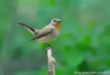 红喉姬鹟小型鸟类,体长11~13厘米。雄鸟上体灰黄褐色,眼先、眼周白色,尾上覆羽和中央尾羽黑褐色,外侧尾羽褐色,基部白色。颏、喉繁殖期间橙红色,胸淡灰色,其余下体白色,非繁殖期颏、喉变为白色。…全部>>