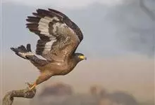 短趾雕:体长62-70厘米,体重1.2-2.3千克。它们的颔、颈和胸部上方呈浅棕色。头部浑圆像猫头鹰般,眼睛呈鲜黄色。身体沉重,上体灰褐,下体白而具深色纵纹,喉及胸单一褐色,腹部具不明显的横斑,…全部>>