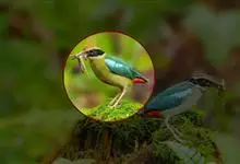 蓝翅八色鸫是雀形目八色鸫科的鸟类。体长17-20厘米,体重类约48-70克,体型圆胖,尾短,腿长,以身体具有红、绿、蓝、白、黑、黄、褐、栗等鲜艳夺目,丰富艳丽的色彩而得名,是很有观赏价值的鸟类。主要…全部>>