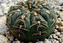 绯花玉 Speg.)是仙人掌科、裸萼球属多肉植物,植株呈扁球形,表皮墨绿色,刺针状,每个刺座有5枚灰色周刺,花生于球体顶端,夏季开花,花色有白、粉红、深红等。果实纺锤形,深灰绿色,种子黑色。…全部>>