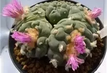 乌羽玉 Coult)是仙人掌科乌羽玉属的多年生肉质植物。老株丛生,萝卜状肉质根,球体偏球形,表皮暗绿色或灰绿色,株高5-8cm,棱垂直或呈螺旋状排列,顶部多绒毛,小花钟状或漏斗形,淡粉色至紫红色,…全部>>