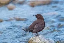 河乌是河乌科河乌属鸟类。身长17-20厘米,翼展25-30厘米,体重55-75克,雌雄体色相似,额、头顶、头侧、颈、上背暗棕褐色,肩部、腰部和尾上覆羽基部灰色,近羽端黑褐色,羽缘灰色,…全部>>