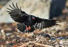 红嘴山鸦,是脊索动物门鸟纲雀形目鸦科鸟类。红嘴山鸦的成鸟通体羽毛纯黑色具有蓝色金属光泽,翼和尾泛有蓝绿色金属光泽;虹膜暗褐色,喙较为尖细,并且呈镰状下弯,喙和脚朱红色。…全部>>
